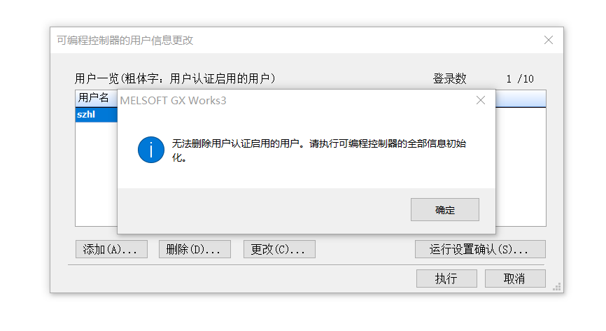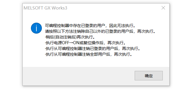 當(dāng)有其他用戶在登錄中時,無法初始化可編程控制器。可重啟CPU電源,再登錄認(rèn)證啟用的口令就能成功初始化
