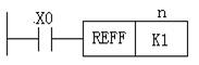 1)REFF為16位運(yùn)算指令,占7個(gè)程序步。