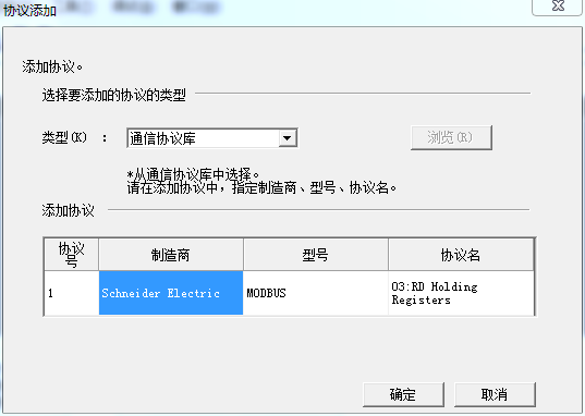 按如下窗口選擇,協(xié)議名一項(xiàng)里可以根據(jù)自己的實(shí)際情況,選擇MODBUS的功能碼,此處我們選擇讀保持寄存器功能碼03,