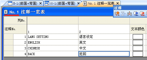 預(yù)覽列 NO:這里的預(yù)覽列為 1 時,是預(yù)覽英文注釋;為 2 時,是預(yù)覽中文注釋。注釋組 NO:因為一開始只建了一個注釋組,所以為 1。