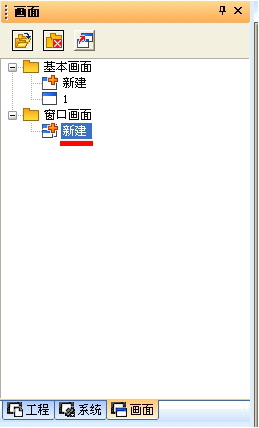 4、在畫面→窗口畫面中雙擊新建,進(jìn)行新建窗口畫面。
