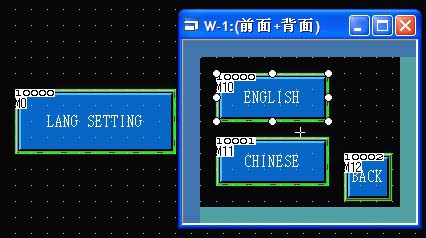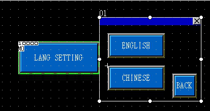 保存一下畫面,再次啟動觸摸屏仿真。這時當(dāng)按下語言設(shè)定開關(guān)時,對話框出現(xiàn)在了指定位置。