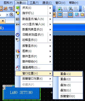 結(jié)束觸摸屏仿真,在菜單欄→對象→窗口位置點擊重疊 1。