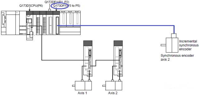 當通過同步編碼器類型時,可以選擇通過Motion內置接口的編碼器、Q172DEX同步編碼器輸入模塊或Q173DPX手脈輸入模塊進行輸入,控制圖如下: