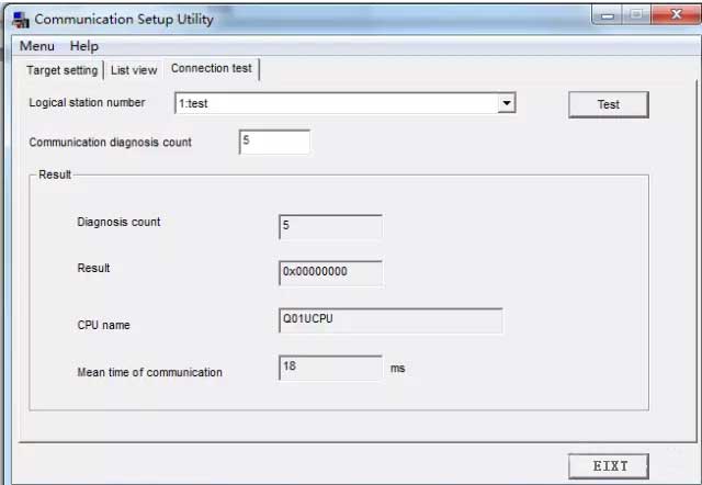 2.使用三菱PLC仿真軟件GX Work2,筆者在測(cè)試時(shí)已經(jīng)打開了仿真軟件,通過(guò)mx的測(cè)試按鈕測(cè)試連接成功,此時(shí)使用的邏輯站號(hào)為1,后面用C#調(diào)用控件dotUtlType屬性logic Number也要設(shè)置為1;