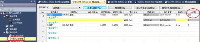 其次,在定位數(shù)據(jù)的最后一列,就是設(shè)置M代碼的地方,每一個定位數(shù)據(jù)都可以設(shè)置一個M代碼,M代碼可以在1-65535中任意設(shè)置一個整數(shù)(設(shè)為0則表示不使用),同一軸的定位數(shù)據(jù)里,M代碼不要設(shè)為一樣,不同軸之間則無所謂。比如,在本例中,軸1定位數(shù)據(jù)1的M代碼設(shè)置為100,定位數(shù)據(jù)2的M代碼設(shè)置為102。 為了在程序中不混淆,軸2定位數(shù)據(jù)1的M代碼設(shè)置為101。