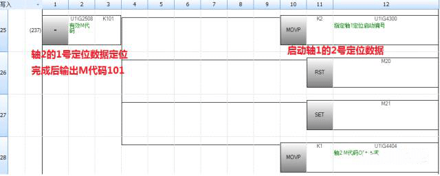 軸1定位完成---M代碼輸出---軸2定位啟動