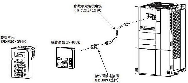 ? 使用電纜將操作面板 (FR-DU08)或參數(shù)單元 (FR-PU07)與變頻器連接,可以將操作面板或參數(shù)單元安裝于電氣柜表面,