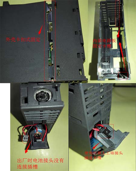 Q00U/Q01UCPU內(nèi)部是單PCB電路板,因此空間大,而固定方式又采用的是塑料卡扣式,非螺絲固定(圖一),其優(yōu)點是有彈性抗震能力強(qiáng),但易產(chǎn)生彈性縫隙。(而以前的老型號CPU是雙電路板螺絲固定)。