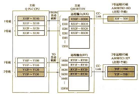 主站三菱QJ61BT11N與遠程I/O站三菱PLC模塊AJ65BTB2-16D、AJ65BTC1-32T之間的通訊