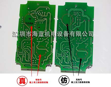 IO板上。原裝主控芯為三菱的芯片,其它如光耦,晶體管,驅(qū)動(dòng)芯片均為日原廠原裝器件,而仿貨均為國(guó)產(chǎn)器件,外觀及其顏色很容易分辨出來(lái)