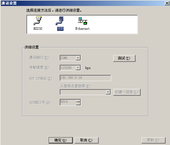2、筆記本按照以下設(shè)置通過三菱觸摸屏的USB口與三菱觸摸屏建立通訊連接。
