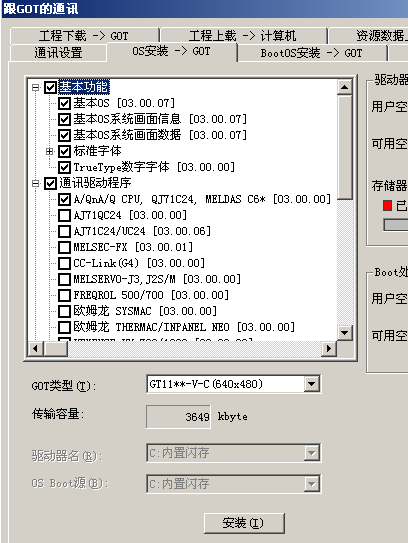 4、再安裝OS,注意GOT類型不要選錯,應(yīng)為GT11**V-C(640x480)