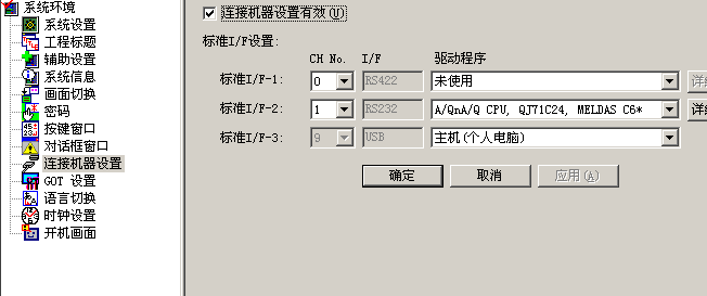 1、使用三菱PLC電纜QC30R2通過RS232方式與PLC通訊,PLC端不用做任何設(shè)置。而三菱觸摸屏GT11系列如下圖所示: