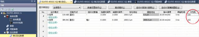 其次,在定位數(shù)據(jù)的最后一列,就是設置M代碼的地方,每一個定位數(shù)據(jù)都可以設置一個M代碼,M代碼可以在1-65535中任意設置一個整數(shù)(設為0則表示不使用),同一軸的定位數(shù)據(jù)里,M代碼不要設為一樣,不同軸之間則無所謂。比如,在本例中,軸1定位數(shù)據(jù)1的M代碼設置為100,定位數(shù)據(jù)2的M代碼設置為102。 為了在程序中不混淆,軸2定位數(shù)據(jù)1的M代碼設置為101。