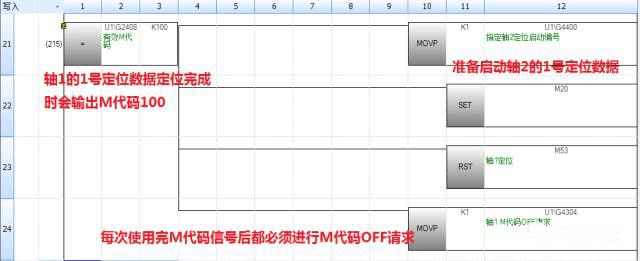 軸1定位完成---M代碼輸出---軸2定位啟動